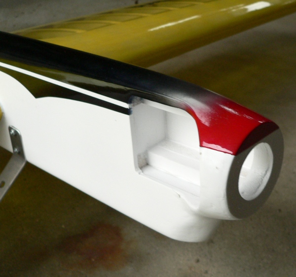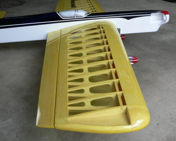 かなりの厚翼ですが綺麗に肉抜きされて軽量にできています。このクラスでは珍しく前後縁プランクでリブキャップがあります。 |