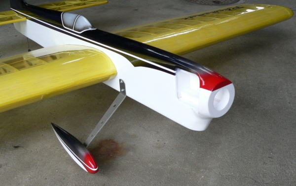 エンジン仕様なのでラダー部分がオフセットしてあります。垂直尾翼部分も組み立て式でテーパー状になっています。 |