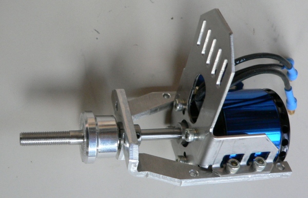 シャフトの長さはプロペラアダプターがほぼベアリングに当たるぐらいに切りました。ベアリングはフランジ付で後ろからオプションのセキュリティリングでおさえています。気になった芯ぶれですがまったくありません、すばらしい加工技術です。この状態で246gです。 |