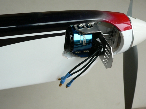 機首はこだわりの造形です。モーターをバックマウントで取り付けるには正確にマウント材を取り付ける必要がありますが丸い胴体なので墨付けも大変そうであきらめました。 |