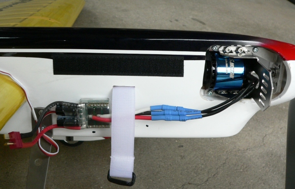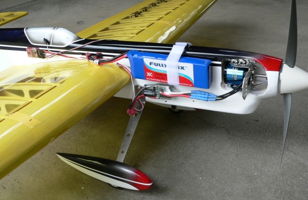 プロペラはAPC12*6ERでリポは4S−2700mA、モーターはOMA−3820−960、ESCはキャスル50A.テンペストさんによればノンガバナーで使うなら安い物でもよいそうです。 |
