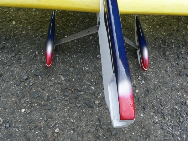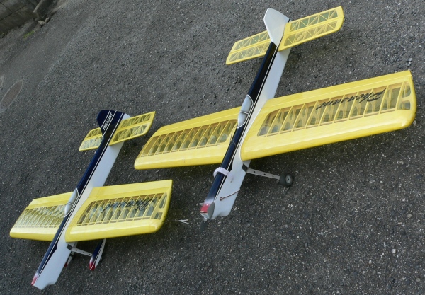1号機はノーズの部分は別ですが胴体の厚さは37mmなので2/3になりました 機体のみの重さが1号機は826gで2号機は804gと22g軽くなっています。KMAの規定では小型2種競技は全備で1400gなので1400g以内に仕上げればプロフィールのF2Bと小型2種に参加することができます。1号機とパーツはほぼ一緒のものを使う予定ですがもう少しすっきり見えるようにできないものかと考えています。 |