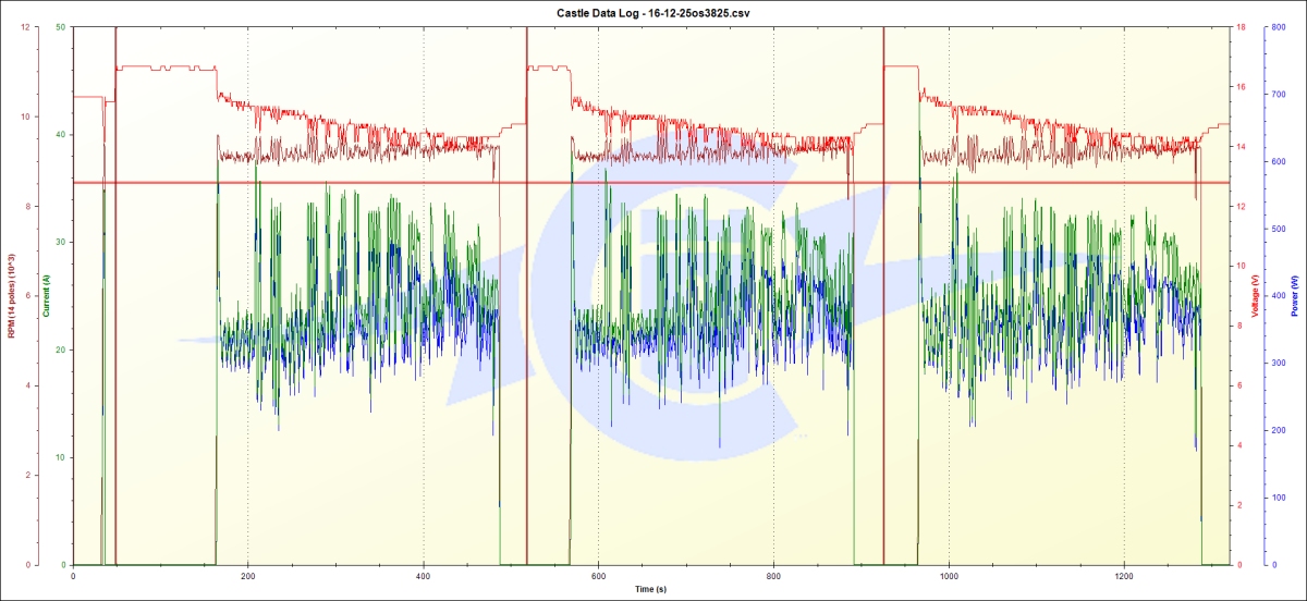 デュアルスカイとOS3825−750はガバナーモードなので単純にはいえませんが1号機のモーターより電流値が低く効率が良いようです。