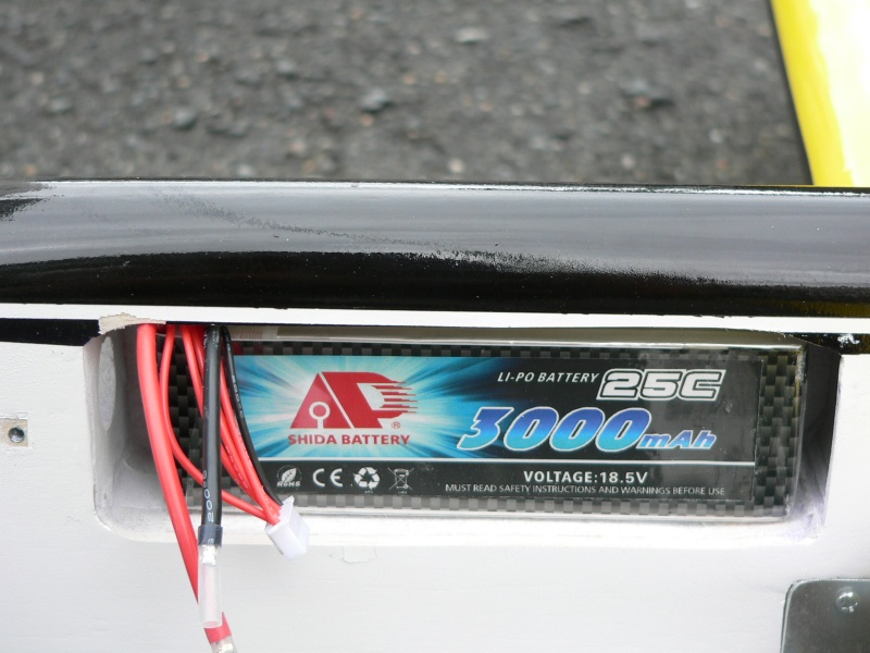 バッテリー室の蓋は3mmベニヤにアルミパンチ板張りですが、サンダーパワーのバッテリーを使うときは幅があるのでこれでやっと収まっています。