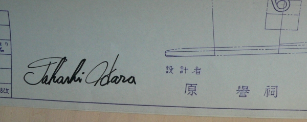 設計者の原さんのサインが入った設計図です、彼は現在ラジコンショップのパワーズの社長さんです。 |