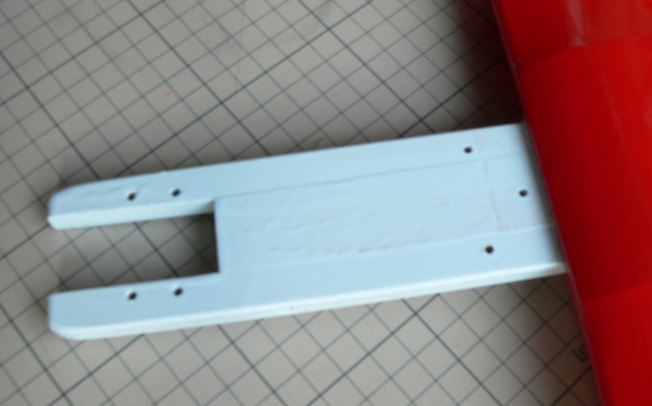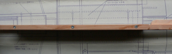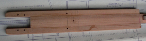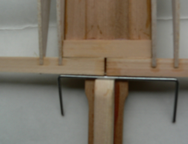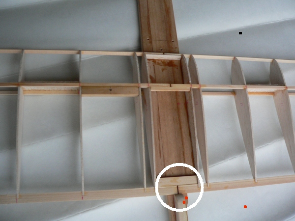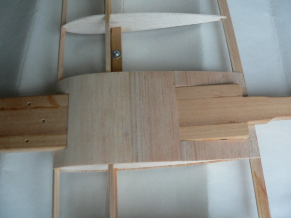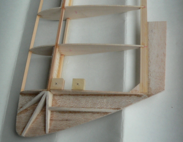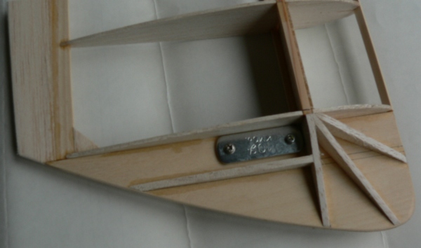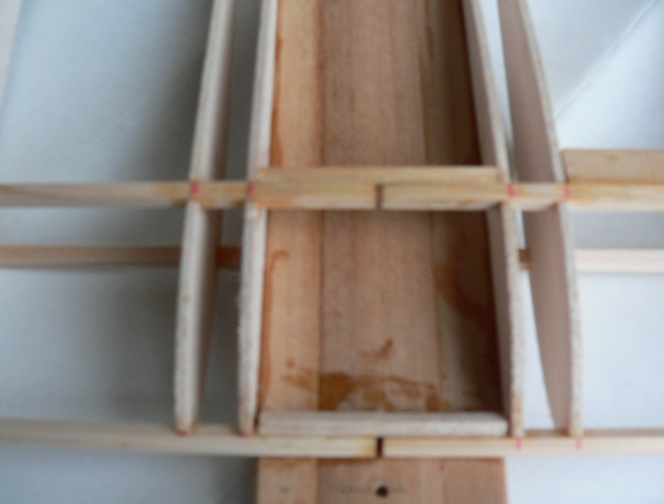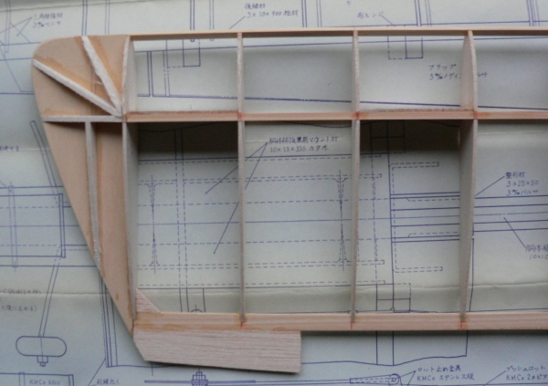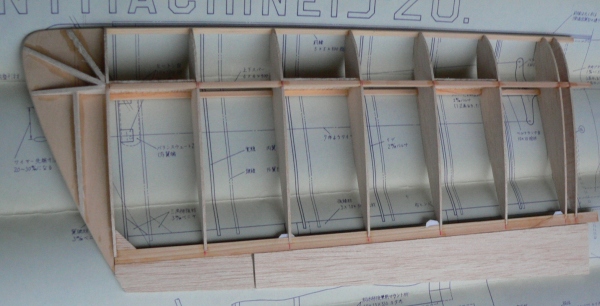 裏面はこんな感じです胴体とリブも瞬間を流して接着しておきます。補強材自体は胴体の幅と同じになっています、これも一応接着しておきます。 |