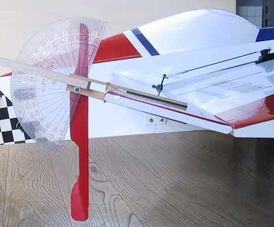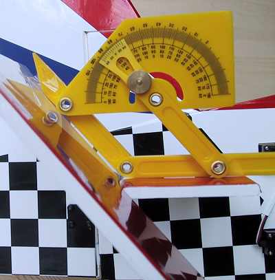 そのままDOUNもいけます。 大事なことは0度を決めた時のままゲージが舵面からずれなければ良いのです。 ニュートラルの時に0度に合わせればそれが基準になるので舵面が水平である必要はありません。 |