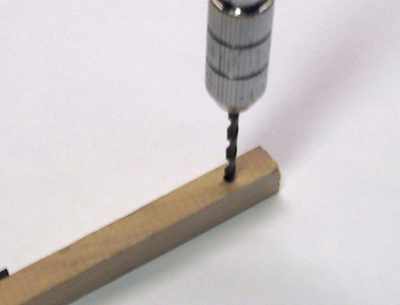 角材はヒノキ棒が良いでしょう。1.8〜2mmの穴を開けます |