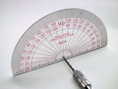 分度器の中心に1.8〜2mmの穴を開けます これは正確であること |