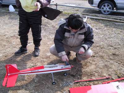 | 原因:ベテランの意見では、絞り過ぎとのこと。エンジン調整の時にレスポンスが悪かったのでハイ、スローとも1/8回転ほど絞めたのがとどめだったのか?最近慣れてきてついつい絞り過ぎの傾向があるのかもしれない(大反省)ガソリンエンジンは止まらないと一般に言われていますが噂では結構止まっているみたいです。充分キャブの調整をしましょう(ちなみにうちのクラブではここ2ヶ月で4機がエンストし2機が大破1機が中破しているがエンストの原因は色々である) |