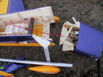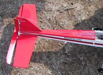 墜落のショックかほとんどの動翼が外れています。ナイロンヒンジはエポキシと抜け止めのピンを使いましょう。もっと簡単なのはイージーヒンジに瞬間ですが、組み合わせを間違えると、とんでもないことになります。ゴム止め主翼のトレーナー機ですので、機体は小破で済み近いうちに復活するでしょう、イキナリ身を持っていい勉強をした新人でした。 |