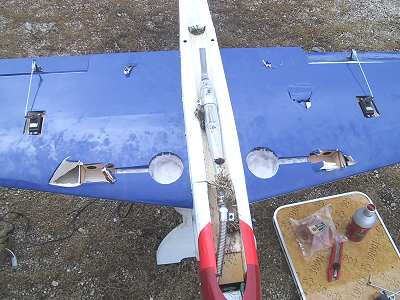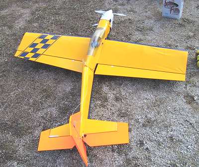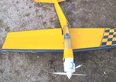 事の顛末は 飛行前各部のチェックを受けOKが出ての2フライト目、トレーナーコードを付けていたのにきりもみで墜落。ベテラン教官に非難ごうごうでしたが、機体を回収して調べると動翼がほとんど外れています。IMのナイロンヒンジを刺して瞬間を垂らしただけだったのです。さすがに機体チェックでは分かりかねます、教官も名誉回復で一安心。 |