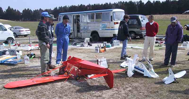 残骸を集め事故調査委員会のメンバーが現場検証をする 機体が大きいだけに衝突する可能性は高いわけだが、今回はほとんど正面衝突のようだ。 ラジコンの場合相手の機体を見ながら飛ばすことは出来ないので助手の指示や音で判断するしかないが、狙っても当たらないものなのにこんなこともあるもんだ OH MY GOD 両機の製作者のKさんは、少しがっかりしたよだが、すでに次の大型機を製作中で拍車がかかりそうだ。 3分の1の新オーナーになったはずのTさんは大物が片付いてすっきりといった風に見えた。メカを前オーナーに返せば一件落着。 |