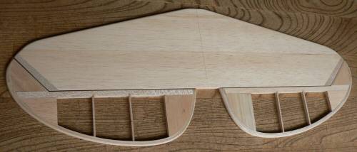 エレベーターの後縁は2mmバルサの積層で組み立て済みでした。助かりました。 |