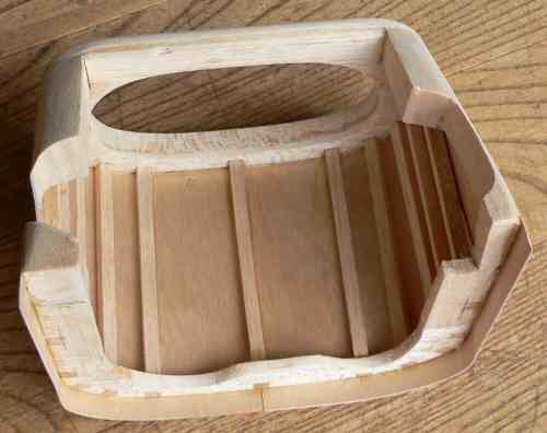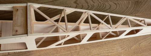 側板は2mmベニヤでよく肉抜きがしてあります。5mm角バルサでトラス構造にしてみました。 |