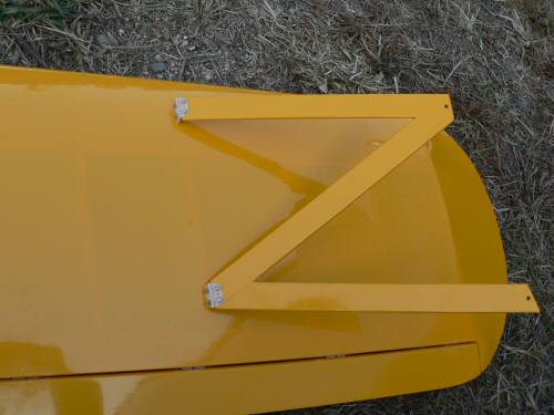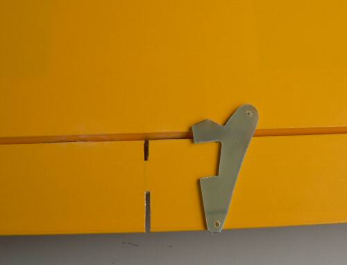 エルロンサーボは下翼だけでロッドで上翼と繋ぎます。エルロンホ−ンは2mmFRPでこのような形に作ってみました。 |