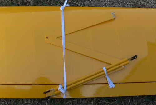 運搬時はエルロン連結ロッド共ゴムひもでとめておけば邪魔になりません。 |