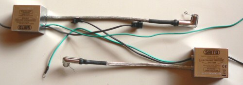 下が新しく送られてきた物です。FG−14との共用のためプラグコードが7cm程短くなっています、他も短くなってトータルで10gの減量になています。他にタイミングセンサーとプラグも同梱包でイグニッション一式頂きました。古いセットは送り返しました、原因を調べて開発の役に立つのでしょう。 |