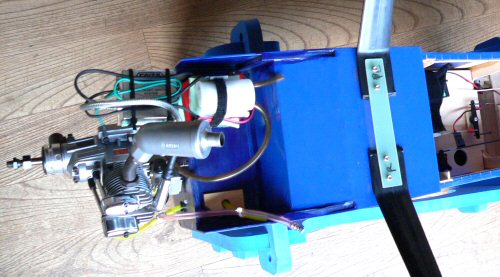 ラダーは軽量化のためワイヤーリンケージにエレベーターはロッド式。タンクはIM420ccから190ccに変更。 |