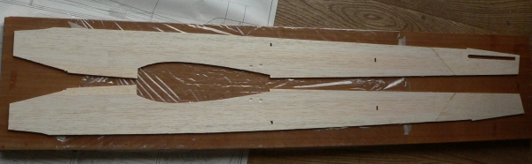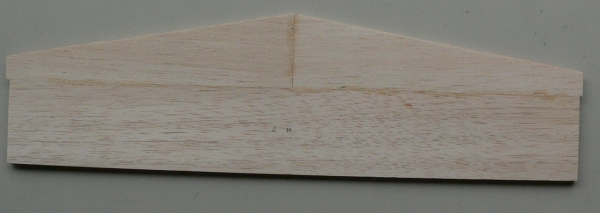 水平尾翼はフルプランクです。骨組みは図面上で簡単に組めます。プランク材は隙間が出来ないようにサンディングして合わせてから瞬間で接着しましたが出来栄えを言えばセメダインCのほうが良いです。上下面のプランク材は先に張り合わせて置いて骨組みともども両面を軽くサンディングして滑らかにしておきます。骨組みには木工ボンドでプランク材を接着しました。 11月4日 大体の組み立てが終わって箱の中を見て見るといくつかの部材があまっています。その中にH9が有りました。水平尾翼の両サイドに貼るものです、しかしもう翼端は丸く整形し終わっていますのでいまさらつけるのは大変なので今回は少し小さめの尾翼にします。完全な見落としですが性能に影響があるものでしょうか?次からは仕上げの整形は全部組み立て終わってからにします。 |