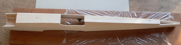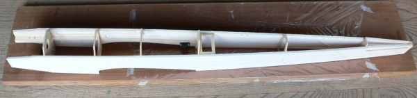 胴枠を基準にして上下面をサンディングしてから上下の部材を接着すればほぼ胴体は完成です。 残すは胴体と主翼の取り付け部分ダウエルとウイングボルト回りです。 |