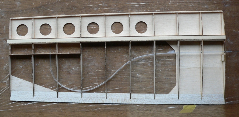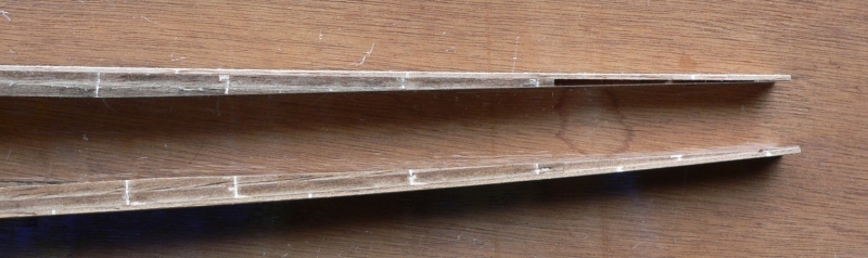 尾翼の組み立ての様子ですが細いクロスリブが長さが少し長い部分があったり、クロスする部分は嵌め合いがきつくて修正が必要でした。真っ直ぐになるように気をつけて組んだつもりですがエレベーターが少し凸になってしまいました、ヒンジをつけて修正できるでしょうか? |