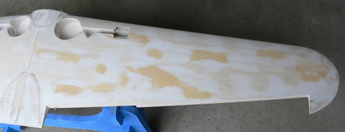 サンディングシーラー塗り #320で磨き この時点で 1250g +65gはなかなかいいぞ 動翼込みで 1320g