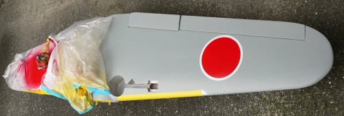 尾翼のマークと上面の暗緑色で一様終わりです。これまた大変なマスキングが残りました。ファイトあるのみだ