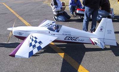 森さんのカーデンエアクラフト35%エッジ。昨年は成家さんの機体のカラーリングでRCAWに紹介されていましたが、このエッジも素晴らしい仕上がりでした。 |
