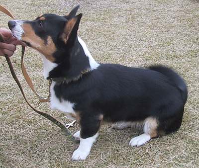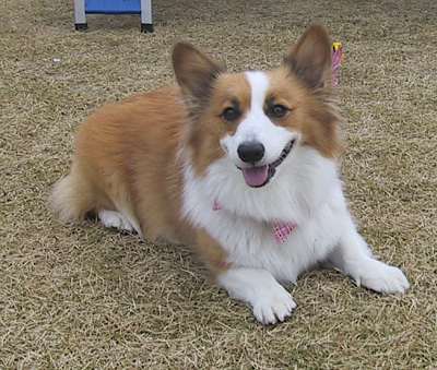 シッポフリフリのルリ 初めて見ましたコーギーの尻尾 シャッターチャンスが悪くて向う 向きですが立派なシッポでした |