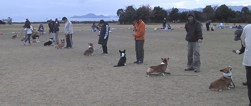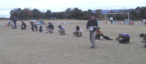 どこまでも待っています マテをさせて飼い主が少しづつ離れ行きます。皆結構上手でした |