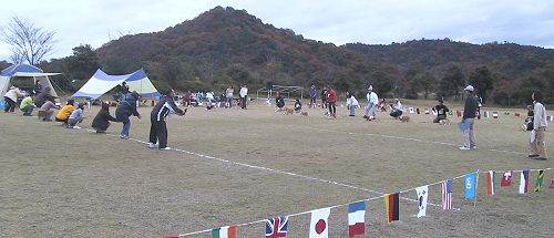 開会式 会場は全面芝で フリスビードッグ大会の 会場と同じ設定になっています |