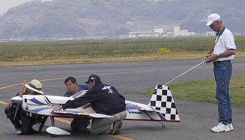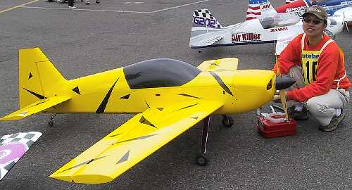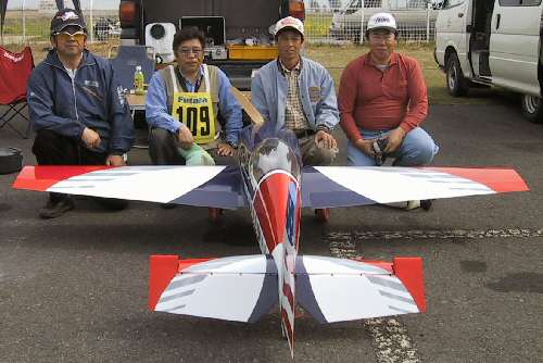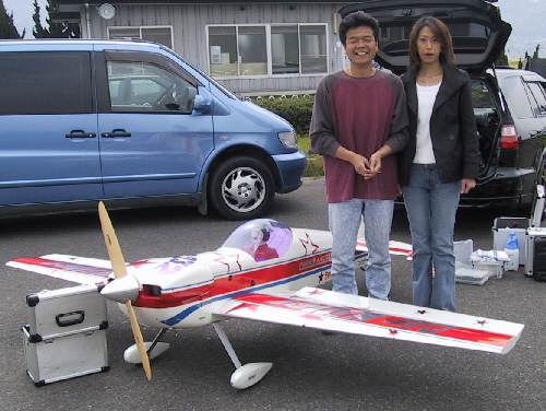 BNCの高本さんと奥様 機体はカーデンの3mキャップ DA150 BNCではこの度 コンポジットARFの西日本地区の代理店になったそうです。メリットは西日本の人は近いので送料が安くなるとのこと。興味のある方はBNCのHPを御覧ください。 |