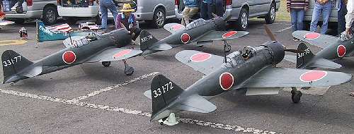 何年かぶりに見た出雲ラジコンクラブの4分の1ゼロ戦 52型。 今回は全機サイトウの3気筒450を搭載。ラジアルエンジンの音がいいですね。 |