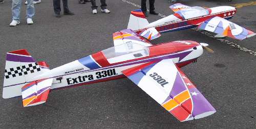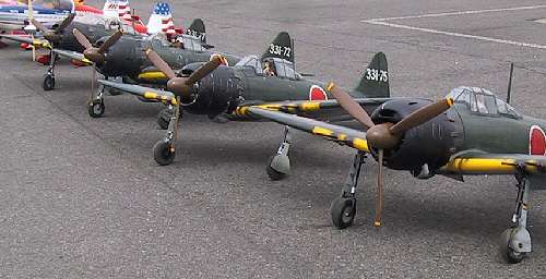 出撃準備完了、始めて見た時は2.7mの大きさに驚いたがこうして並べると標準サイズになっている。大型機のみのエアキラーカップの凄さだ。 動画のコーナーにフライトビデオあり |