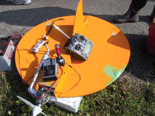 こちらが接触相手の円盤機。 養生テープで養生しながらその後もなんども飛んでいた。 |