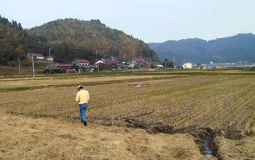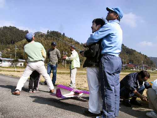 いつも使っている田んぼの滑走路はぬかるんで大変な状況だとの連絡で各自準備万端で望みました。