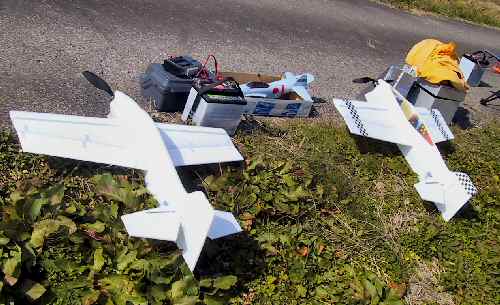 最近はやりのEPP機はこんな場所でも気兼ねなく飛ばせます。おまけに風が無かったので飛びまくっていました。 |