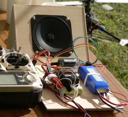 私が初めてドイツからネット通販で、大枚をはたいて仕入れたリアルサウンドシステムを初公開。しかし音が今一。会場のアナウンスの音が大きいのと、このスピーカーからはノイズがひどくて、クラブ員には受けが悪かった。 帰ってもう1個のスピーカーに変えると非常にいいではありませんか。会場までの運搬方法が悪かったか、直射日光に当たってコーンが変形したのかもしれません。 そのうち零戦に搭載して出撃しますのでその時にまた再評価してください。 |