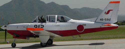 これから編隊飛行に向かうT−7、搭乗員が手を振っています。 |