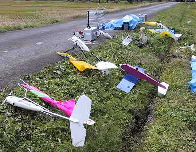 体験飛行用に用意したカイトプレーンはすぐに全滅するはで大荒れの一日でした。