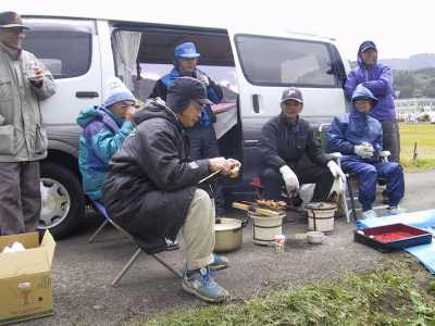 今年は寒くて風が強くて大変でした、用意してもらったテントは飛ばされるは、