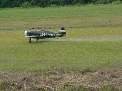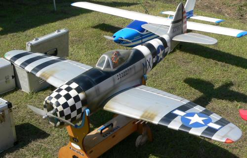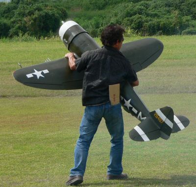 久生選手のP−47サンダーボルトです。安藤さんから貰った2〜3万円程度のARF機だそうですがウエザリングが好くていい感じになっています。YS FZ140搭載だそうですがどう見てもオーバーパワーでしょう。スタントの世界では実力者なのでいい飛びしてました。着陸でひっくり返ってしまい、着陸点が0になっていなければ優勝かとも思いました。 |