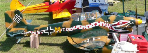 松島選手のJu87 ユンカースです。DA50搭載ですがこの日はどんなに頑張ってもエンジンが掛からずフライと出来ませんでした。 |