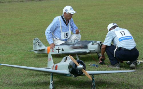 ユングマイスターとスペースウオーカーが2機。手前は山下選手のOS FS52搭載の機体です。 |
