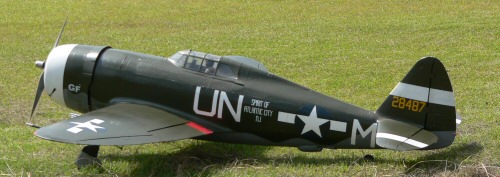 2種目出場の猿渡選手のP47Dサンダーボルトです。ハンガー9の160サイズのARFですがフイルムの上にパネルラインを表現したりしてこれぞARFを作りこんだらここまで出来るといった感じの機体です。 |