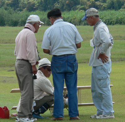 佐賀ラジコンスポーツクラブ飛行場は進入路が大変分かりにくく苦労しました。会場に着いたときには目慣らし飛行が終わり、選手は演技の選択など準備中でした。
