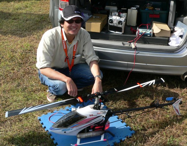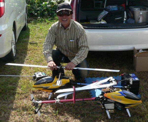 T−REXのヘリをいろいろ持っているSIGERUさんです。飽きたら譲り受けようと狙っているのは私だけではありません。壊さないでね。 |