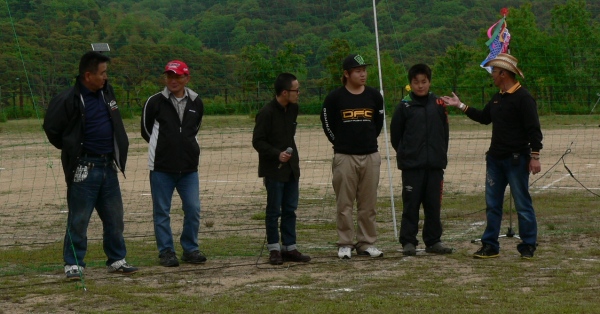 フライヤーの紹介です、左から総長さん、ティーモさん、MCさん、岡選手(高校生)、よーちゃん(中学生)、Haro工房さんです。先日の3DX大会で1位 岡選手 2位 よーちゃん とのことで日本のトップのフライトが見れるわけです。 |