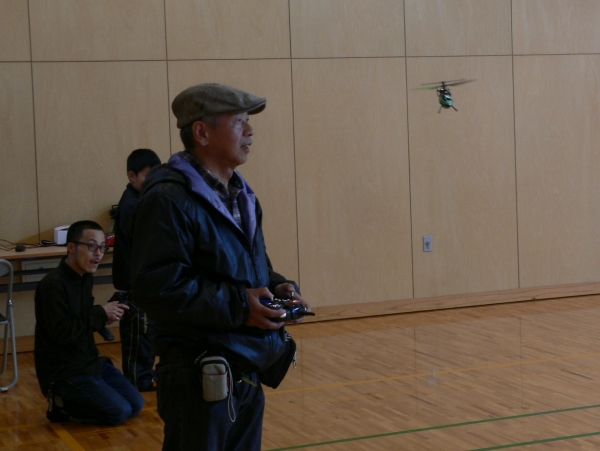 室内ではTREX150で3Dするよーちゃん、岡選手ともどもとにかく飛ばしまくります、ほんとに好きなんですね。 |